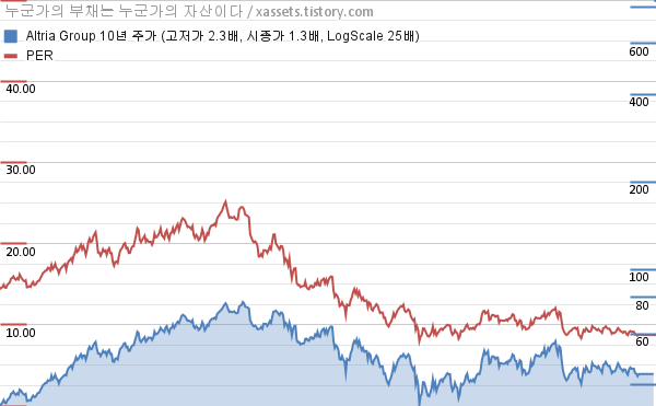 알트리아 그룹 PER 차트 (2013년~2023년)