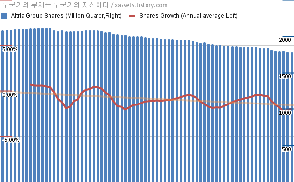 - 지난 1년 동안 알트리아 그룹은 평균 1.96%의 자사주를 매입-소각했다.