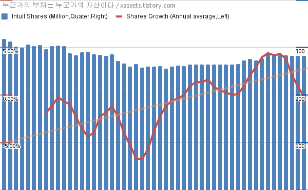 - 지난 1년 동안 인튜이트는 평균 0.18%의 자사주를 매입-소각했다.