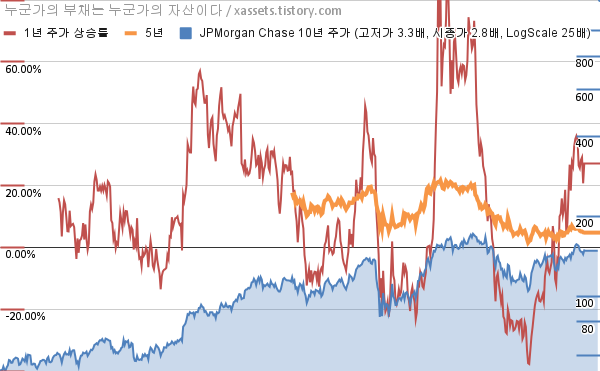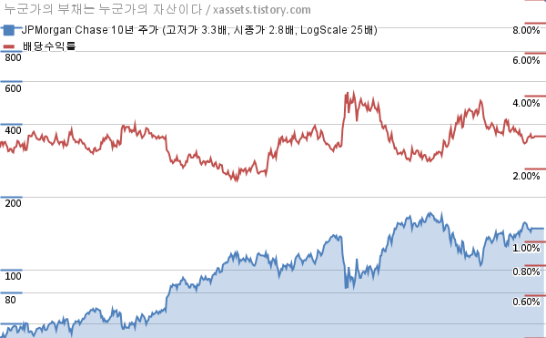- 포스팅일 기준, JP모건 체이서의 1, 3, 5, 10년 연평균 주가상승률은 27.10%, 14.80%, 4.78%, 11.04%이다.