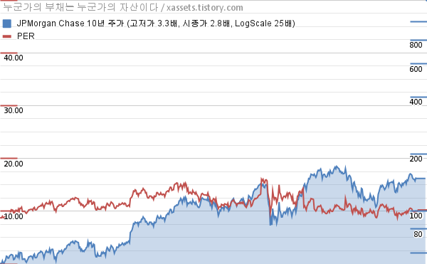 JP모건 체이서 PER 차트 (2013년~2023년)