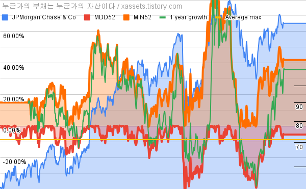 - JP모건 체이서의 10년 평균 MDD는 -8.62%고, 52주 최저가 대비 평균 상승률은 28.02%다.
