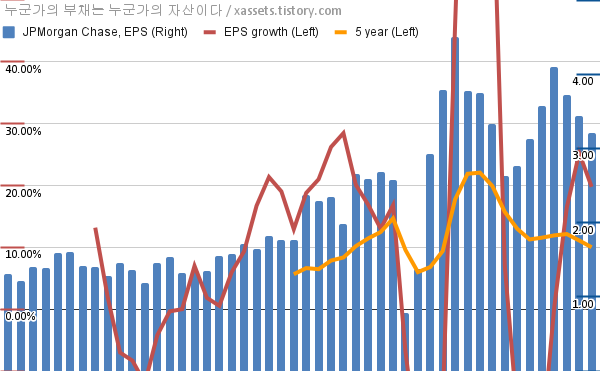 - 포스팅일 기준, JP모건 체이서의 1, 5년 연평균 EPS 성장률은 19.78%, 10.01%이다.