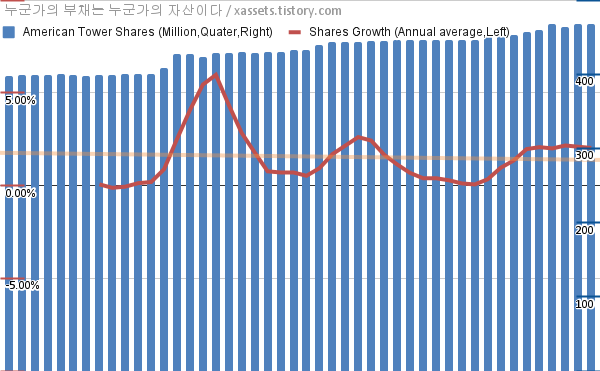 - 지난 1년 동안 아메리칸 타워는 주식수가 약 2.03% 증가했다.