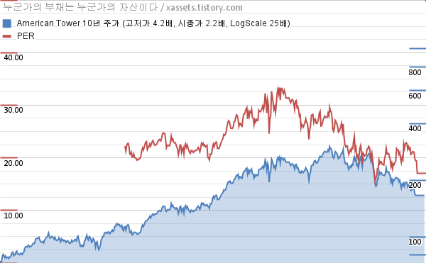 아메리칸 타워 PER 차트 (2013년~2023년)