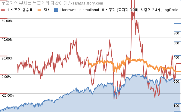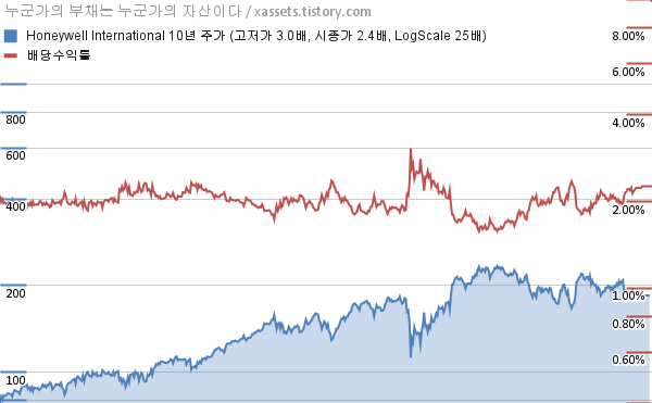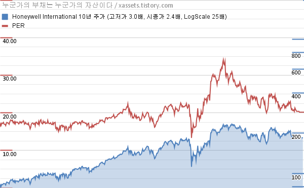 - 포스팅일 기준, 허니웰 인터내셔널의 1, 3, 5, 10년 연평균 주가상승률은 12.06%, 4.15%, 3.33%, 8.56%이다.