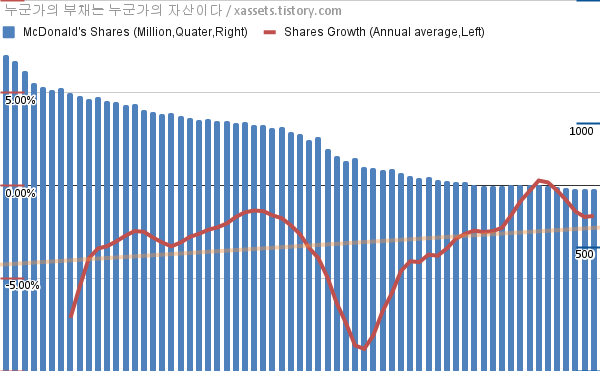 - 지난 1년 동안 맥도날드는 평균 1.64%의 자사주를 매입-소각했다.