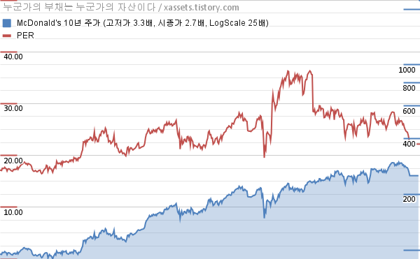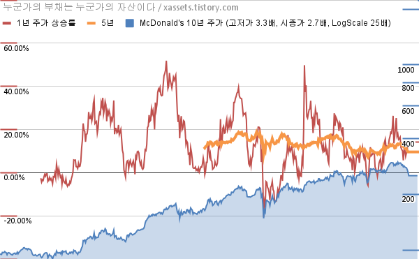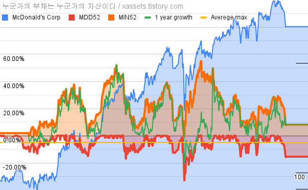 - 맥도날드의 10년 평균 MDD는 -4.89%고, 52주 최저가 대비 평균 상승률은 22.38%다.