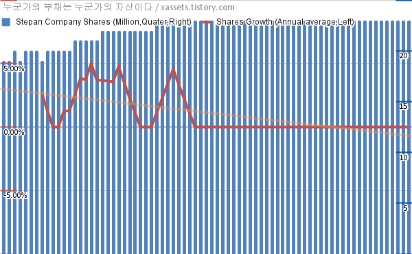 - 지난 1년 동안 스테판 컴퍼니는 평균 0.00%의 자사주를 매입-소각했다.