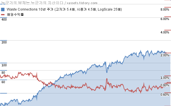 웨이스트 커넥션스 배당수익률 및 주가 상승률 차트 (2013년~2023년)