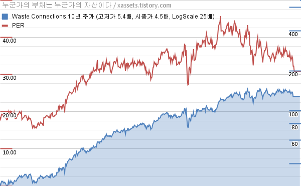 웨이스트 커넥션스 PER 차트 (2013년~2023년)