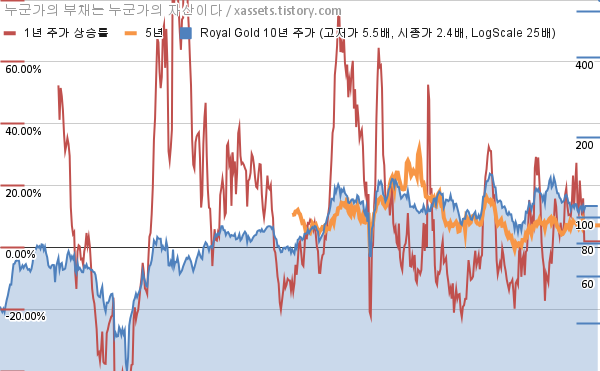 - 포스팅일 기준, 로얄 골드의 1, 3, 5, 10년 연평균 주가상승률은 1.93%, -3.36%, 7.11%, 8.77%이다.
