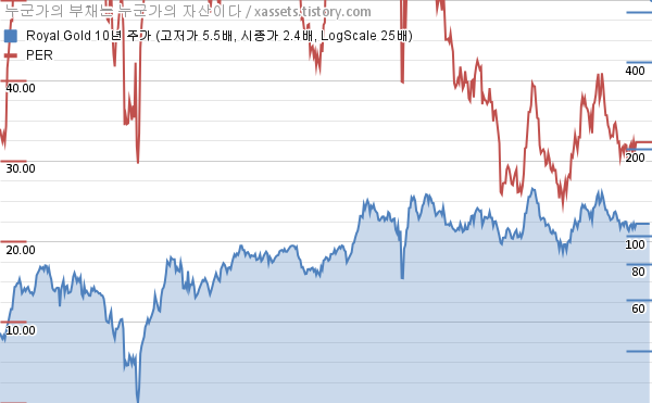 로얄 골드 PER 차트 (2014년~2023년)