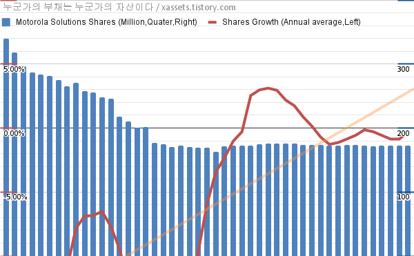 모토로라 솔루션스 자사주 매입 소각 차트 (2011년~2023년)