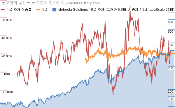 - 포스팅일 기준, 모토로라 솔루션스의 1, 3, 5, 10년 연평균 주가상승률은 21.04%, 23.91%, 20.68%, 17.06%이다.