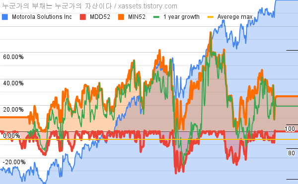 - 모토로라 솔루션스의 10년 평균 MDD는 -6.02%고, 52주 최저가 대비 평균 상승률은 29.46%다.