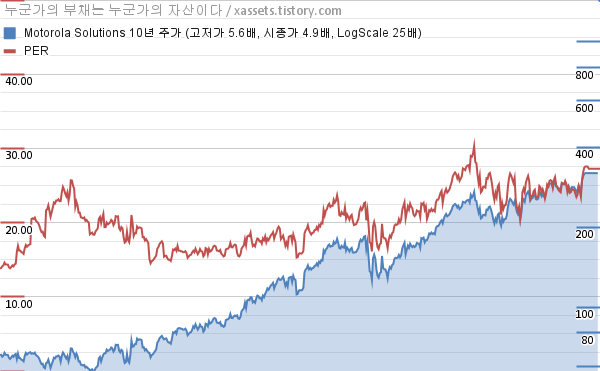 모토로라 솔루션스 PER 차트 (2014년~2023년)