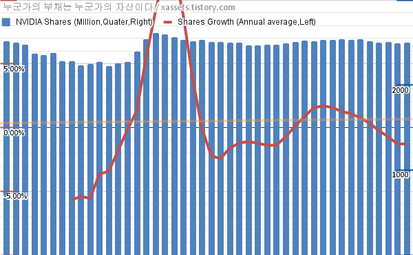 - 지난 1년 동안 엔비디아는 평균 1.29%의 자사주를 매입-소각했다.