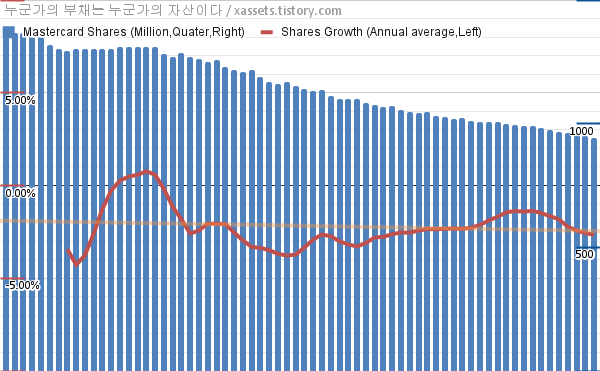- 지난 1년 동안 마스터카드는 평균 2.66%의 자사주를 매입-소각했다.