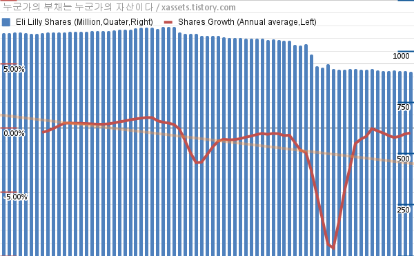 - 지난 1년 동안 엘리 릴리는 평균 0.39%의 자사주를 매입-소각했다.