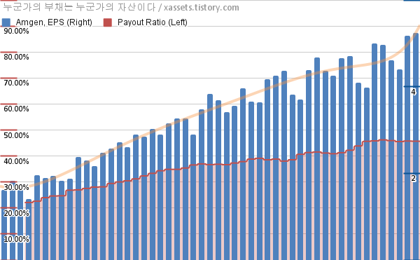 - 암젠은 2012년부터 13년 연속으로 배당금을 증액하고 있다.