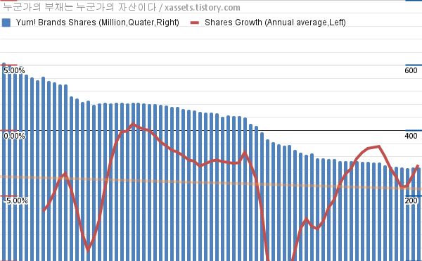 - 지난 1년 동안 염! 브랜즈는 평균 2.64%의 자사주를 매입-소각했다.