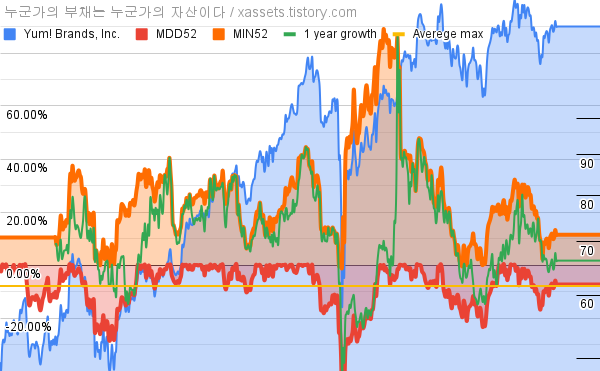 - 염! 브랜즈의 10년 평균 MDD는 -7.94%고, 52주 최저가 대비 평균 상승률은 26.73%다.