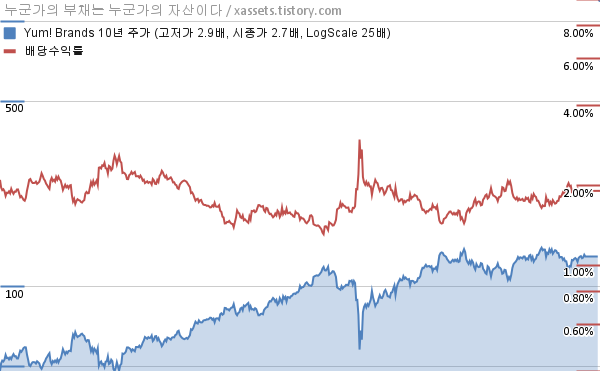 - 지난 2024년 1월 24일에 염! 브랜즈 Yum! Brands (NYSE:YUM)가 배당금 증액을 공시했다. 분기당 배당금이 $0.605에서 $0.67로 전 분기 대비 10.74% 증가하고, 연간 지급 배당금도 전년도 대비 10.74% 증가한다.
