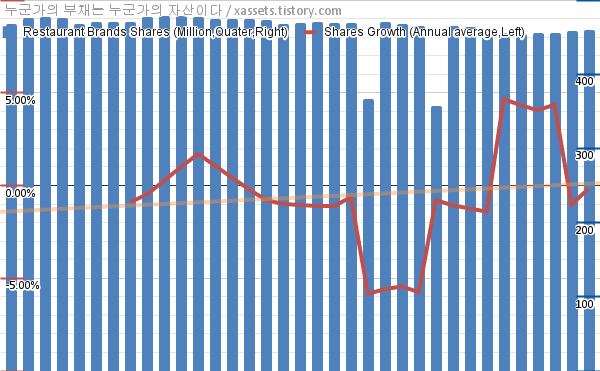 - 지난 1년 동안 레스토랑 브랜즈는 평균 0.16%의 자사주를 매입-소각했다.