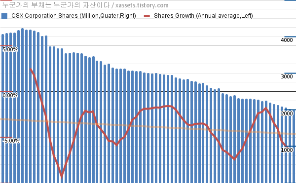 CSX 주식회사 자사주 매입 소각 차트 (2005년~2023년)
