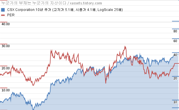 CSX 주식회사 PER 차트 (2014년~2024년)