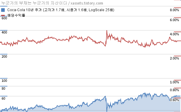 - 코카콜라의 10년 평균 MDD는 -6.43%고, 52주 최저가 대비 평균 상승률은 14.56%다.