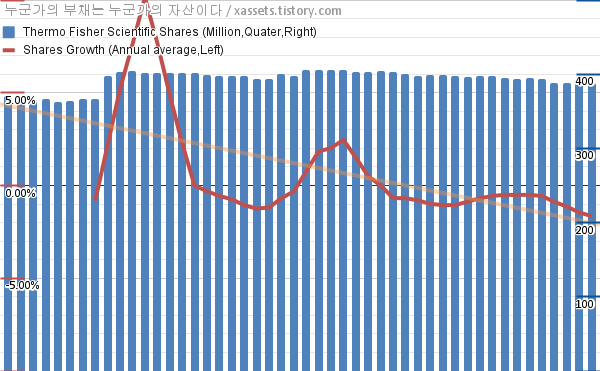 - 지난 1년 동안 써모피셔 사이언티픽은 평균 1.65%의 자사주를 매입-소각했다.