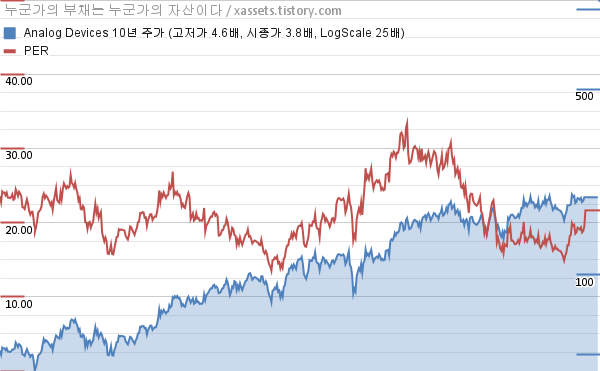 아날로그 디바이스 PER 차트 (2014년~2024년)