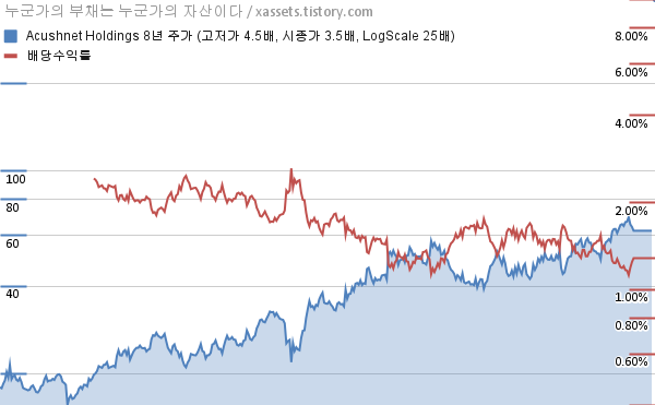 아쿠쉬네트 홀딩스 배당수익률 및 주가 상승률 차트 (2016년~2024년)