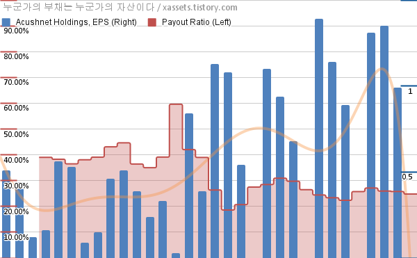 - 지난 2024년 2월 29일에 아쿠쉬네트 홀딩스 Acushnet Holdings (NYSE:GOLF)가 배당금 증액을 공시했다. 분기당 배당금이 $0.195에서 $0.215로 전 분기 대비 10.26% 증가하고, 연간 지급 배당금도 전년도 대비 10.26% 증가한다.