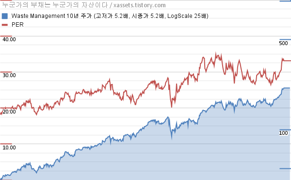 - 포스팅일 기준, 웨이스트 매니지먼트의 1, 3, 5, 10년 연평균 주가상승률은 39.12%, 19.48%, 15.52%, 17.70%이다.