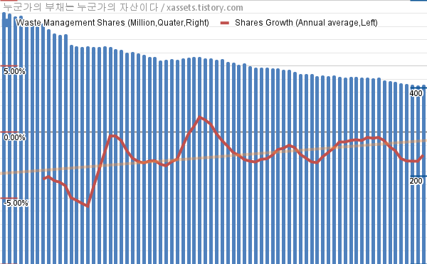 - 지난 1년 동안 웨이스트 매니지먼트는 평균 1.75%의 자사주를 매입-소각했다.