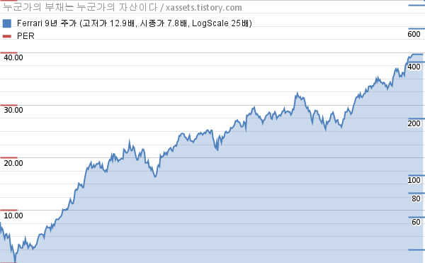 페라리 PER 차트 (2015년~2024년)