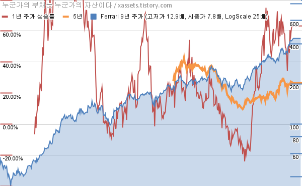 - 페라리의 8년 평균 MDD는 -9.57%고, 52주 최저가 대비 평균 상승률은 49.97%다.