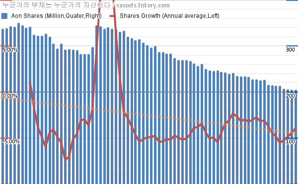 - 지난 1년 동안 에이온은 평균 3.97%의 자사주를 매입-소각했다.