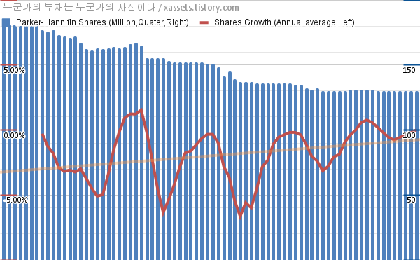 파커 하니핀 자사주 매입 소각 차트 (2005년~2023년)