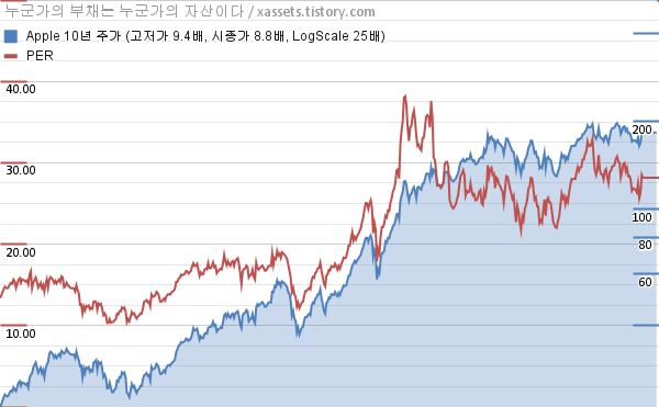 - 애플의 10년 평균 MDD는 -8.02%고, 52주 최저가 대비 평균 상승률은 41.26%다.