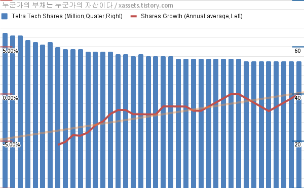 - 지난 1년 동안 테트라 테크는 평균 0.00%의 자사주를 매입-소각했다.