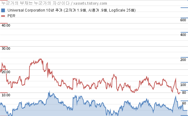 유니버설 코퍼레이션 PER 차트 (2014년~2024년)