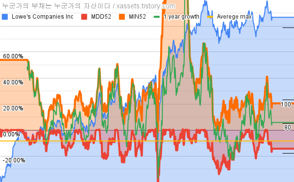 - 로우스의 10년 평균 MDD는 -8.44%고, 52주 최저가 대비 평균 상승률은 36.10%다.