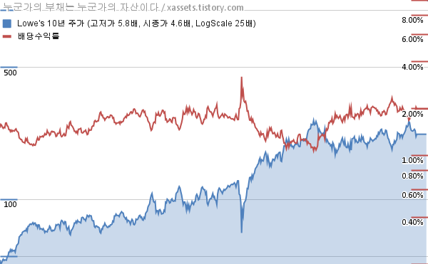 - 포스팅일 기준, 로우스의 1, 3, 5, 10년 연평균 주가상승률은 5.47%, 5.23%, 17.99%, 17.15%이다.