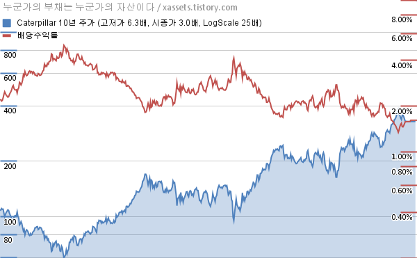 - 포스팅일 기준, 캐터필러의 1, 3, 5, 10년 연평균 주가상승률은 39.96%, 14.23%, 20.92%, 11.64%이다.