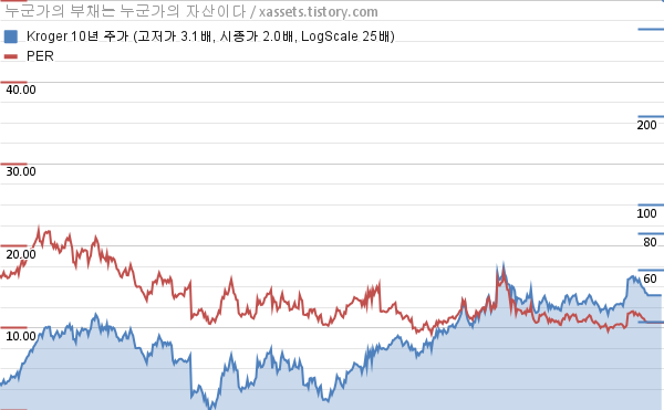 - 크로거의 10년 평균 MDD는 -12.60%고, 52주 최저가 대비 평균 상승률은 23.09%다.