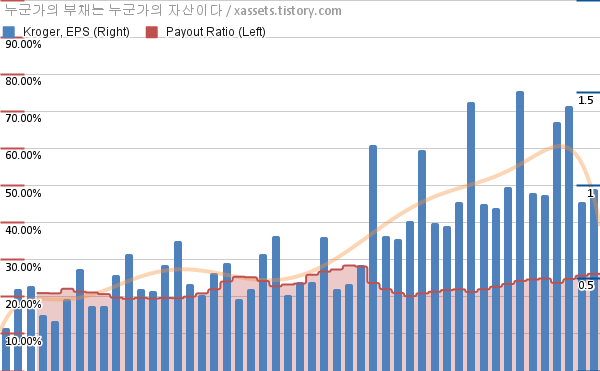 크로거 EPS 성장률, 배당성향 차트 (2012년~2024년)